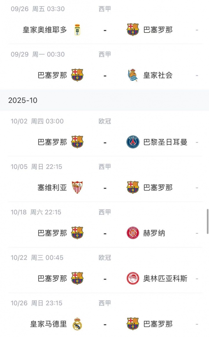巴萨赛程↓